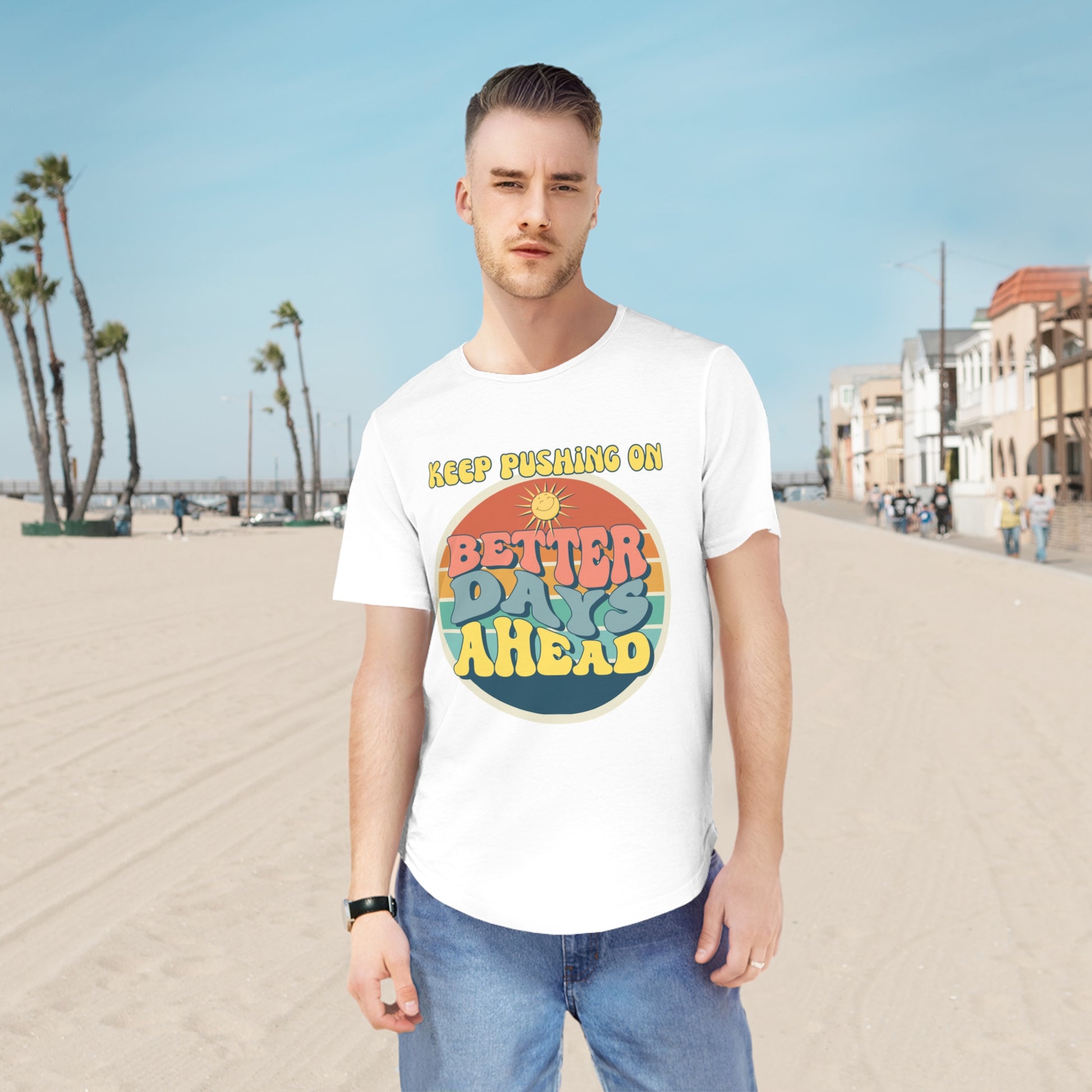 Men's Jersey Curved Hem Tee - 'Better Days Ahead' Graphic Tee